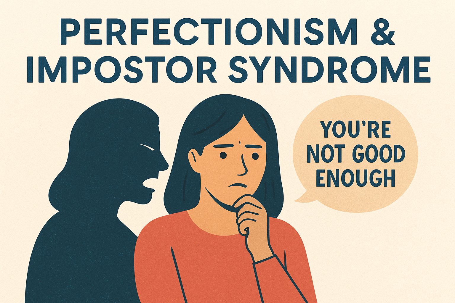 Perfectionism focuses on avoiding mistakes and constantly doing better. Impostor syndrome focuses on feeling undeserving and fearing exposure. Together, they can create a relentless internal pressure that no achievement seems to relieve.